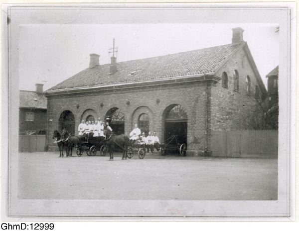 Gamla brandstationen vid Kusttorget. Originalet i privat ägo.