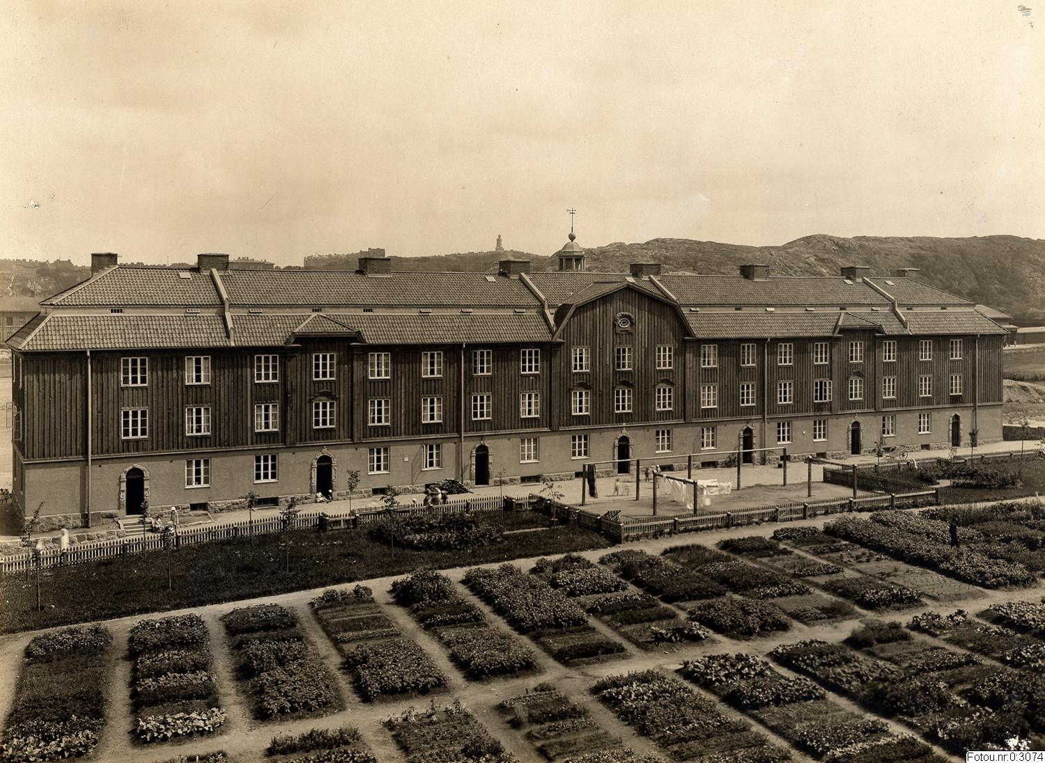 Gårdssidan av Dicksonska stiftelsens bostadshus vid Sågatan/Karl Johans torg.