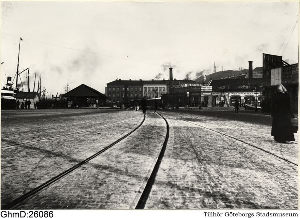 Göteborgs hamn. Parti av Masthuggskajen sett mot Skeppsbron.