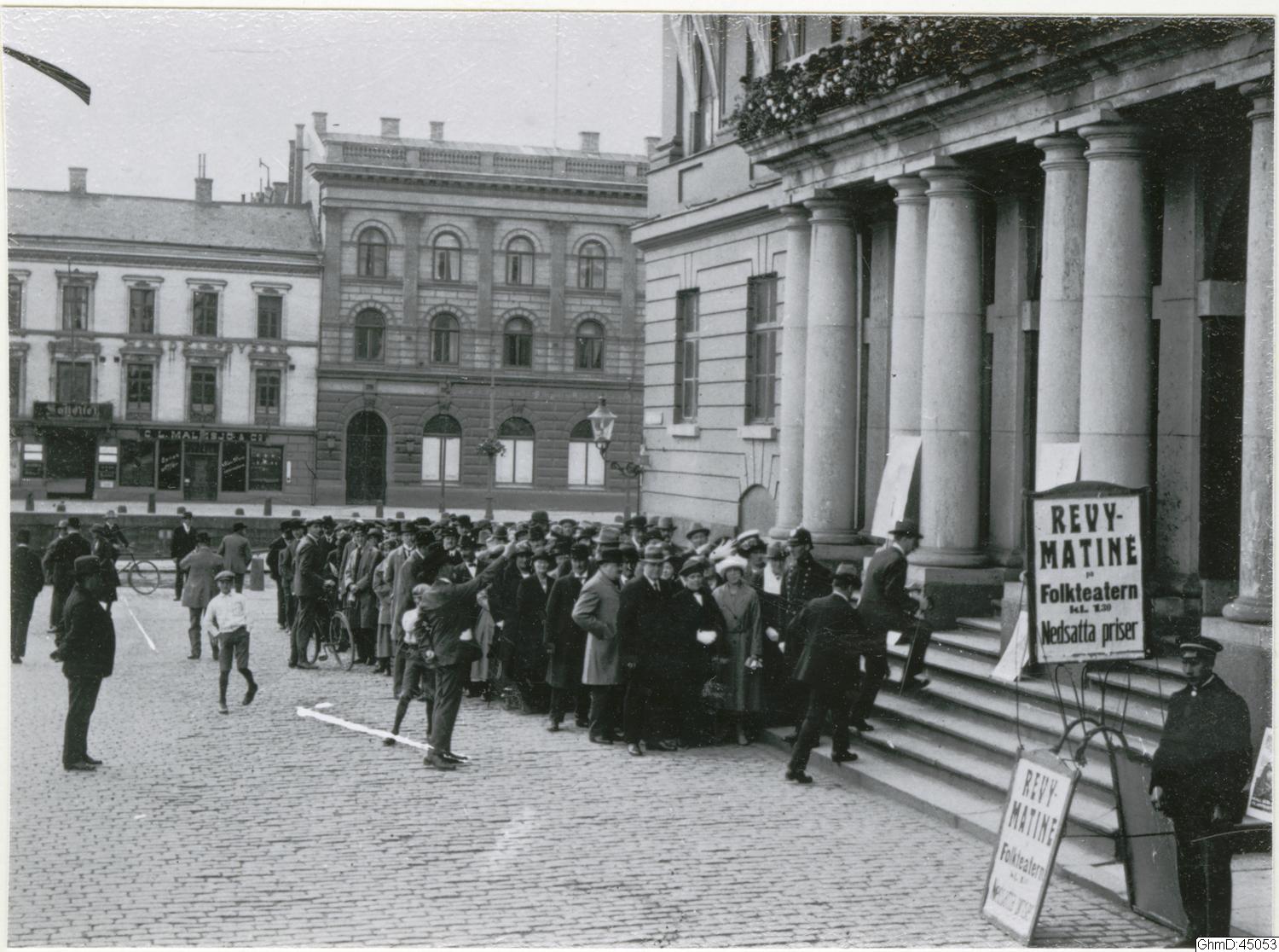 Kö vid folkomröstningen om förbud mot rusdrycksförsäljning 27 augusti 1922 utanför vallokalen vid Rådhuset vid Gustav Adolfs Torg