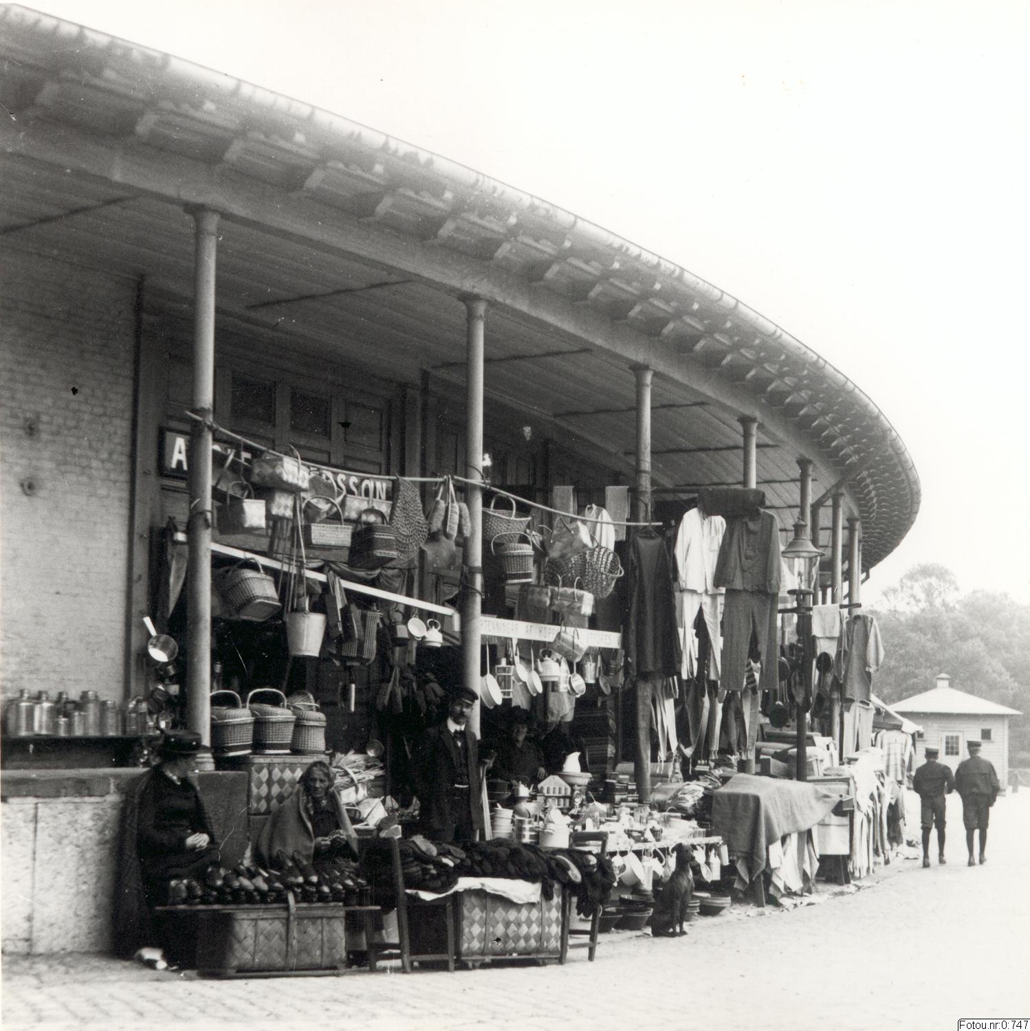 Kungstorgsbasaren med sina salubodar, fotot taget från väster längs Basargatan.