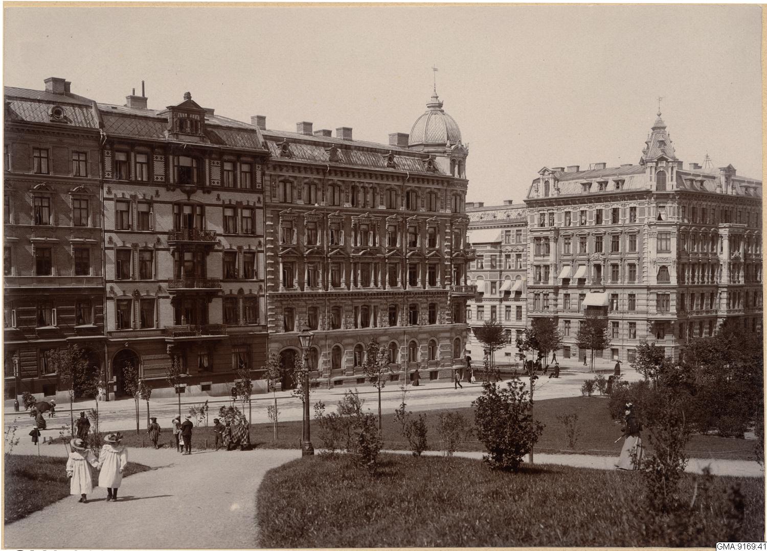 Utsikt från Vasaparken med Aschebergsgatan till vänster.