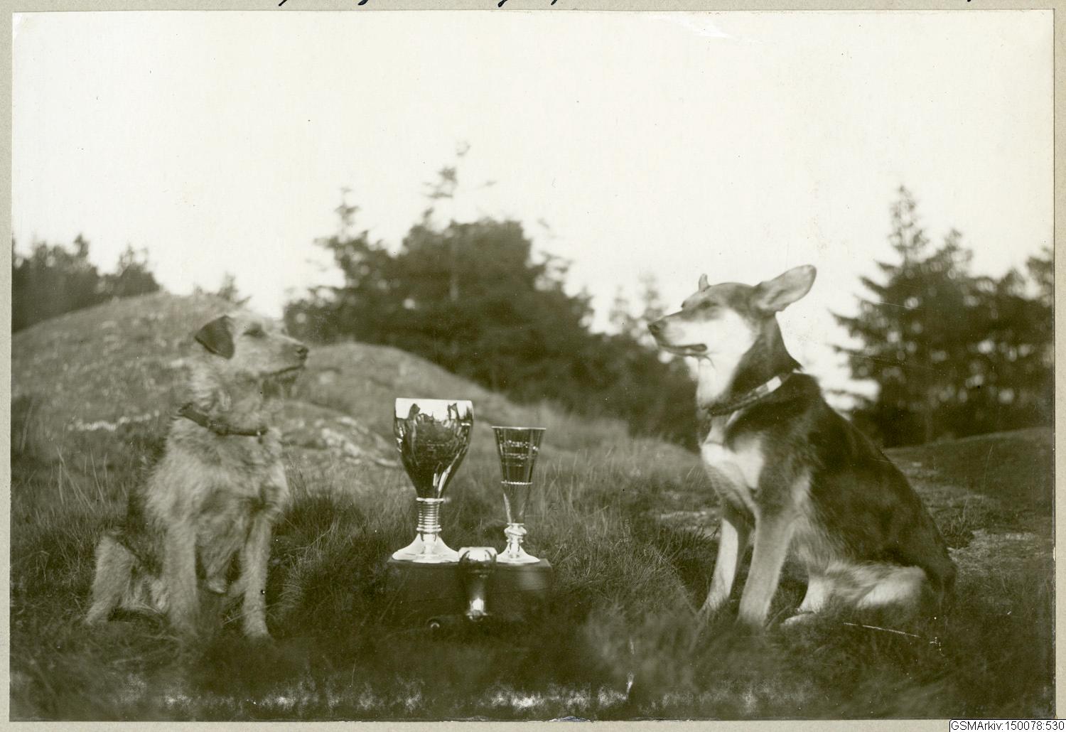 Cora & Kara med sina pris. Polishundutställning d. 21 Sept 1913.