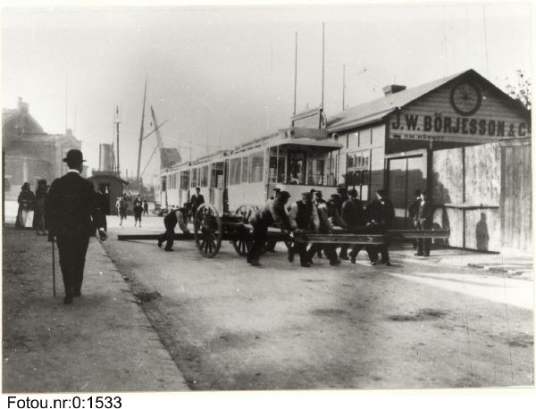 Räls köres från uppläggsplatsen vid Järnvågsgatan 1901.