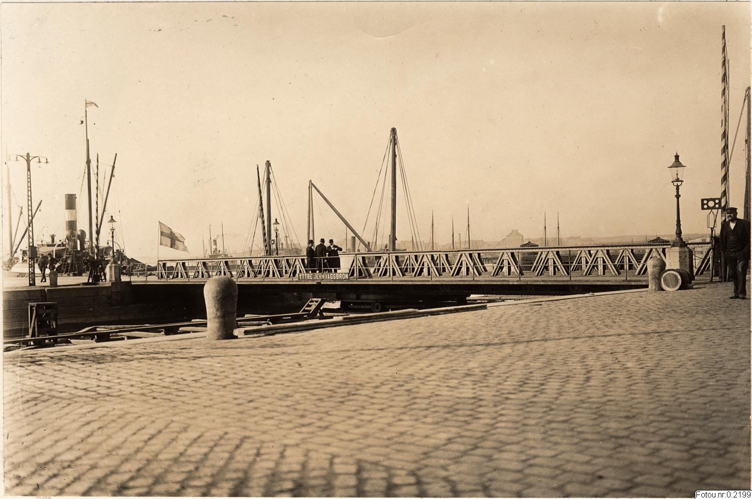 Foto taget från Rosenlundsgatan med Yttre järnvågsbron mot nordväst. I fonden Hisingen.
