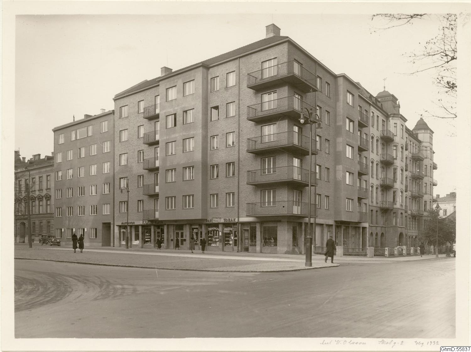 Bostadshus vid hörnet Vasagatan till vänster och Södra vägen till höger.