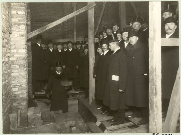 Ombyggnaden 1916. Blylådan nedlägges under grundstenen den 27 dec.