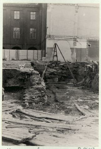 Grävningarna på Kommendantshusets tomt sedan detta rivits 1935. Rådhusgrävningarna 1935.
