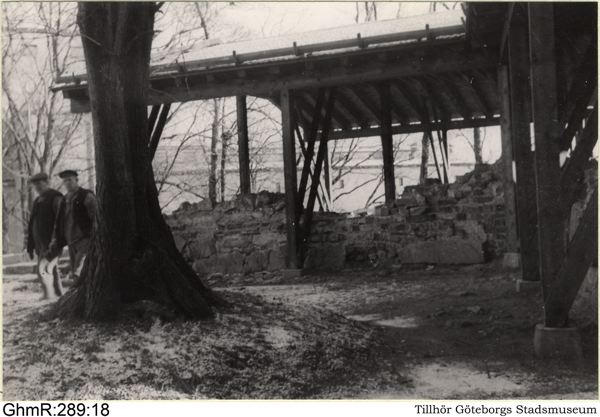 Gamla Älvsborg. Skyddstak över ruinens västra del.