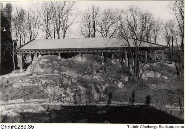 Beskrivning: Gamla Älvsborg. Skyddstak över ruinens västra del.