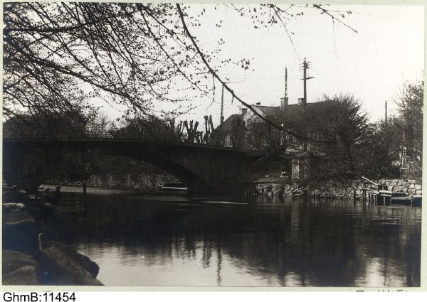 Parti av Säveån 1916. T.h i bakgrunden landeriet Marieholm