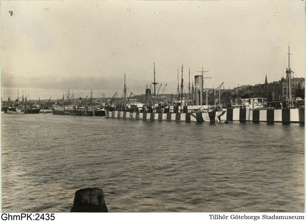Neutralitetsmålade båtar i Göteborgs hamn omkring 1917.