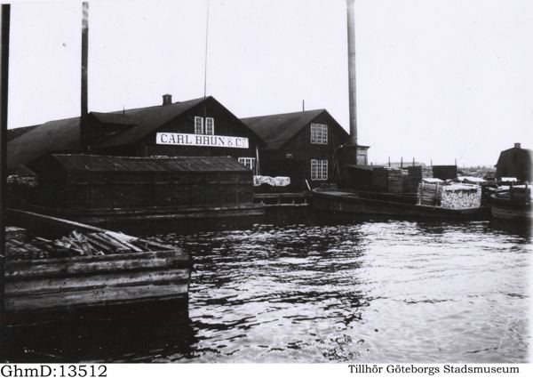 Carl Brun & Co, sågverk f.d. Andersson & Lindberg. Lundbyvassen vid T-kanalen omkring 1910.