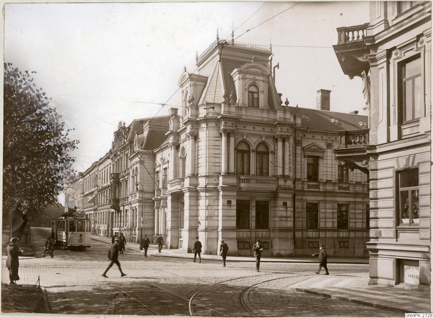Vid korsningen Vasagatan/Viktoriagatan mot väster, med Heymanska villan/Nilssonska villan.