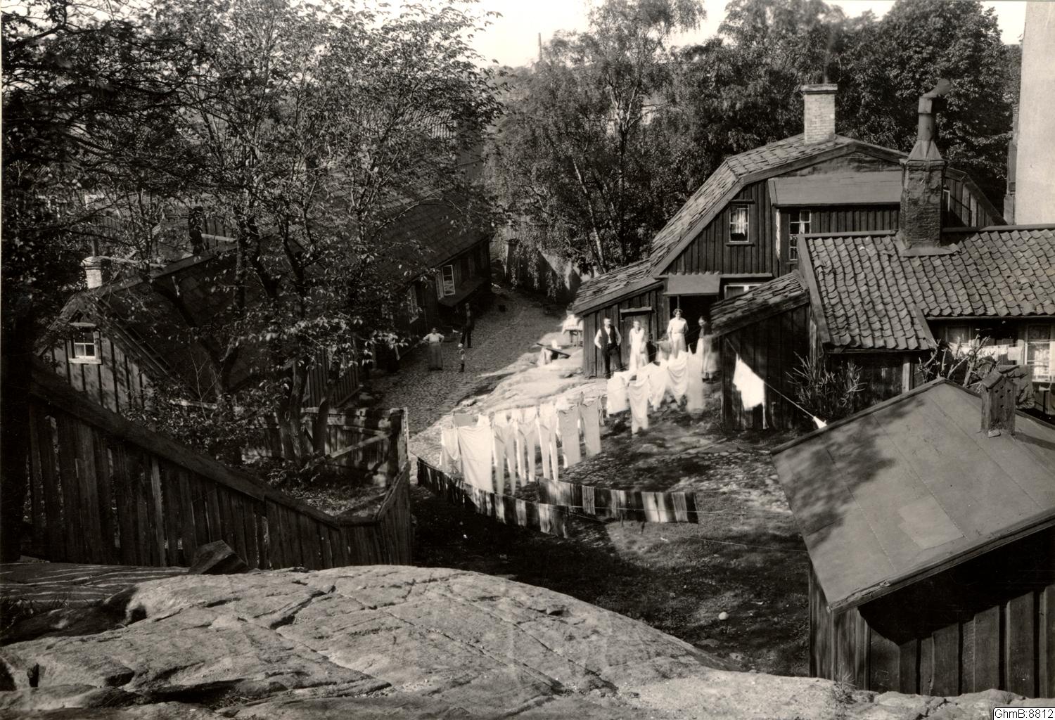 Hus på "Gamle Bäckens gata", gränden mellan Karl Johansgatan 102 och 104.
