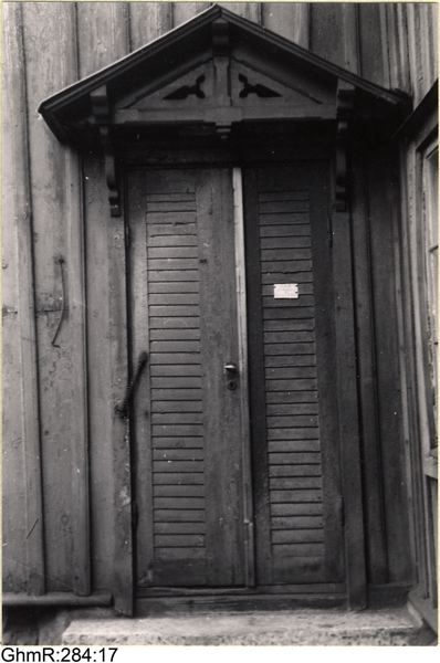 Fyrmästarevägen (-gatan). Dörr i fastighetens nordvästra del, åt gården.