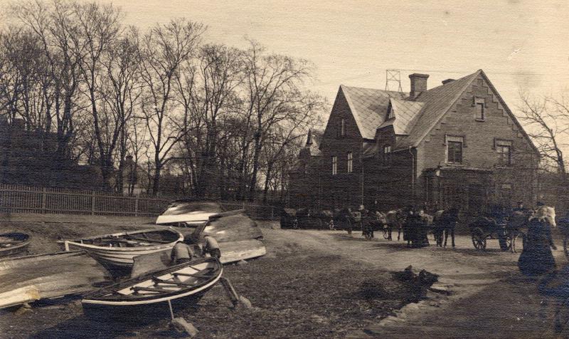Hisingsforor vid Klippan i väntan på överfart. Till höger fastigheten Klippgatan 22
