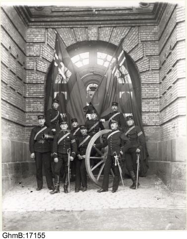 Grupp av Götaartillerister utanför Arsenalen på Lilla Otterhällan.