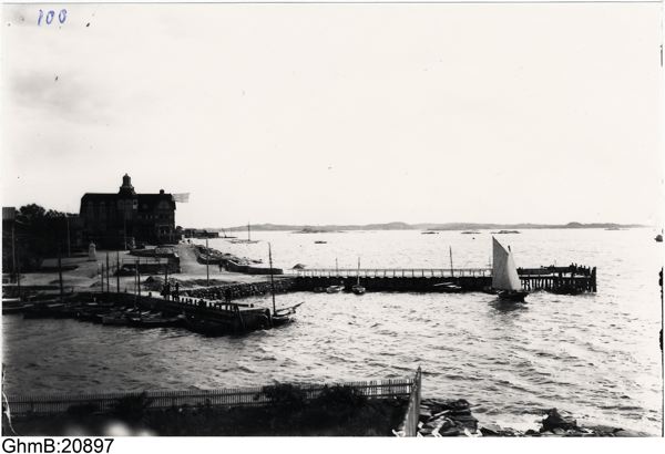 Långedrag, hamnen. Långedragsrestaurangen t.v.