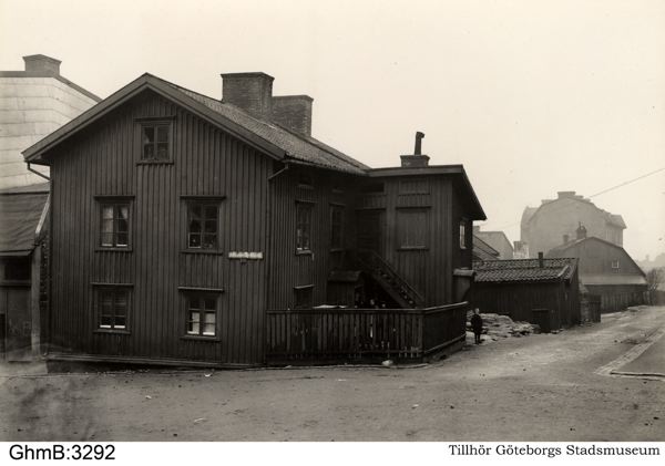 Johannes Kyrkogata 10, Majornas 5:E rote, nr 65. "Spökhuset". Sett från sydväst från Skepparegaan.