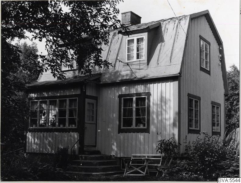 Enfamiljsbostad, lägenhet om 6 rum och kök. Av trä i en våning med inredd vind under brutet tak. Fasaden klädd med ljusgrön locklistpanel. Mörkgröna fönsteromfattningar, knutar och vindskivor. Tacket täckt med plåt.