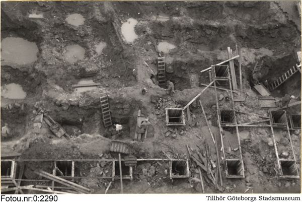 Beskrivning: Utgrävning av Gamla Älvsborgs fästning. Foto av Harald Widéen 1954-11-01.