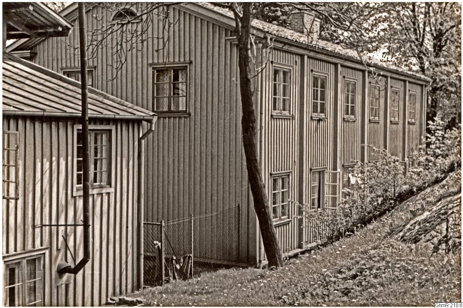 Johannebergs Landeri, med västra flygeln, norra gaveln och västra fasaden. Del av huvudbyggnaden till vänster