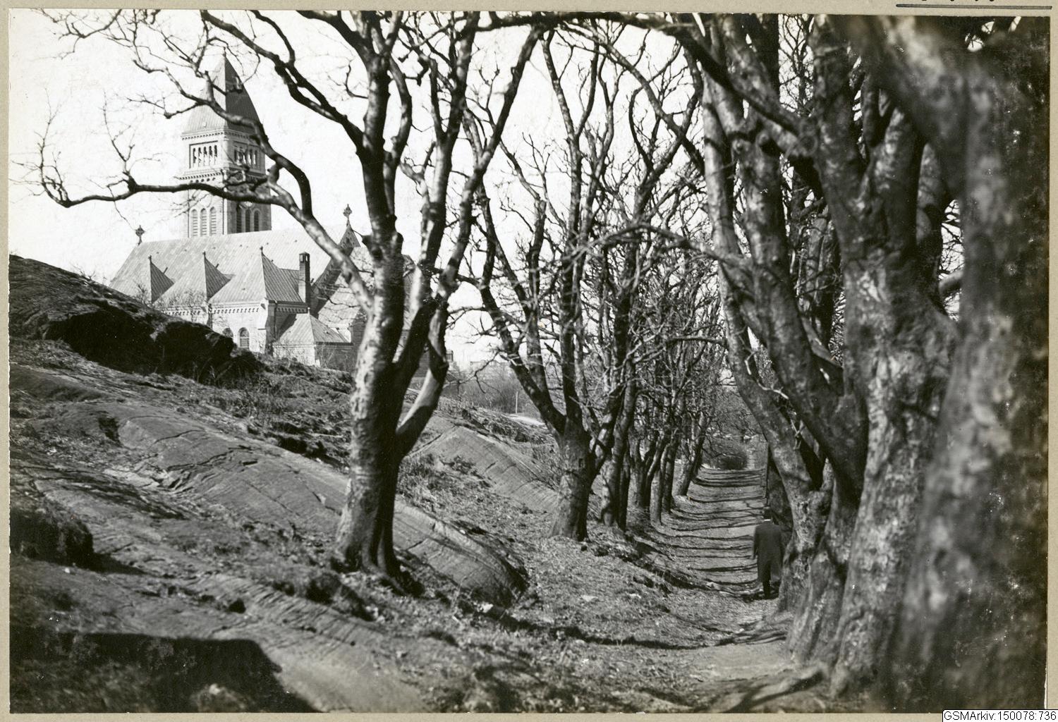 Gamla oxelallén i Brandtdala med Vasa kyrka i bakgrunden. d. 17 April 1914
