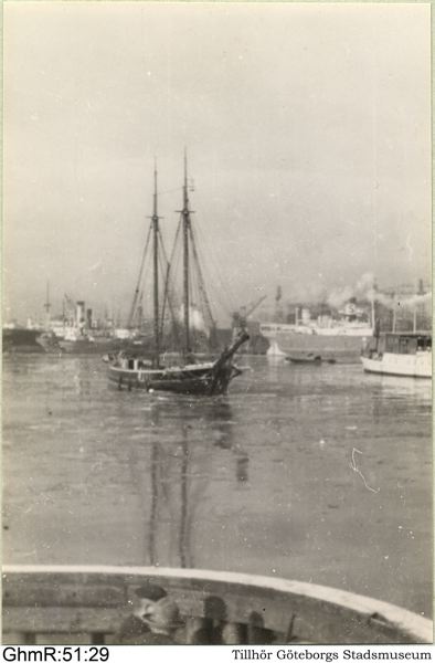 Motorskonare på ingående vid stenpiren.
