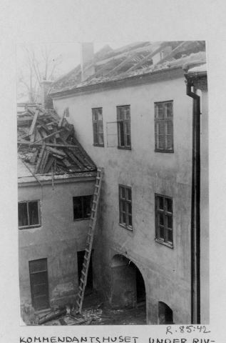 Kommendantshuset under rivning, gårdens nordvästra hörn