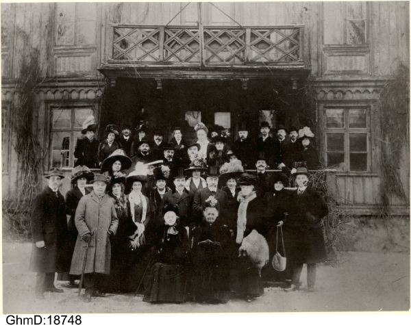 Medlemmar av familjen Fürstenberg samlade på verandan till Oscarsdahl (rivet 1912).