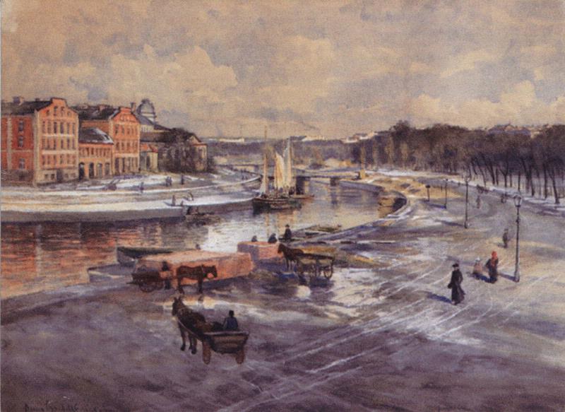 No 2258 Anna Gardell Ericson 1853-1939. Vårmotiv från Hamnkanalen-Göteborg. Akvarell 44x60 cm.