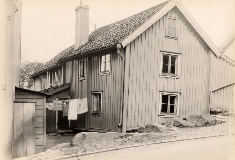 Kjellmansgatan. Del av Majornas 5 rote nr. 12, gavel mot söder, fasad mot väster. Huset dömt till rivning 1950.