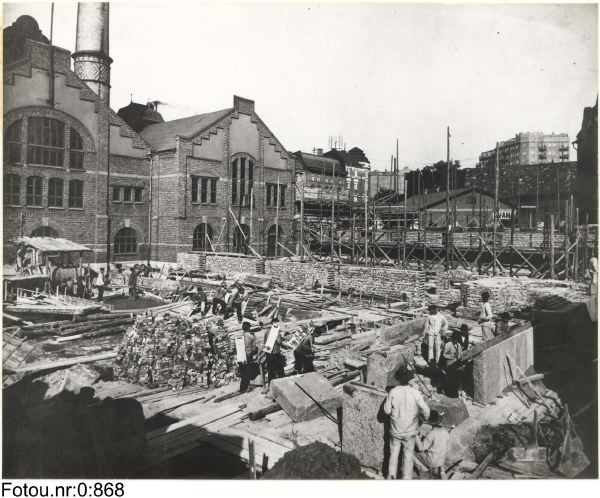 Från anläggningen av Elverkets ångkraftcentral vid Rosenlund 1908.