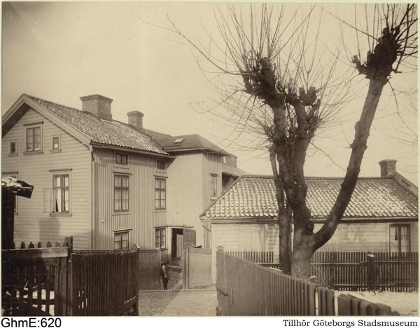 Höglundsgatan 42 B/Gråbergsgatan 23. Vy från Gråbergsgatan. Huset t.h. del av fastigheten (adr. Gråbergsgatan 23).