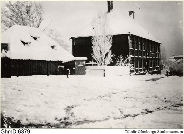Gathenhielmska huset till höger. "Tågboden" till reparebanan till vänster.