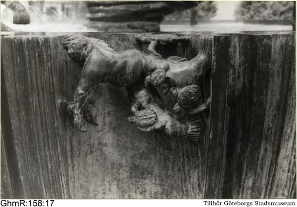Beskrivning: Poseidonfontänen på Götaplatsen. Detalj av karet.