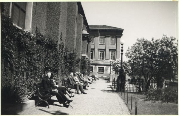 Sommarsiesta vid Kristine kyrkas södra långfasad. I bakgrunden: Rådhuset.