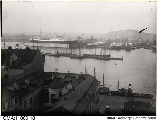 Utsikt från Otterhällan. Gatan som i bildens nederkant går ut mot Skeppsbron är Verkstadsgatan.