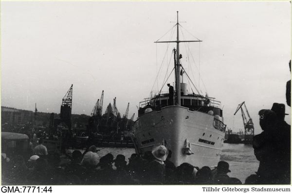 "Kronprinsessan Ingrid" (på linjen Göteborg-Fredrikshavn) angör kaj.
