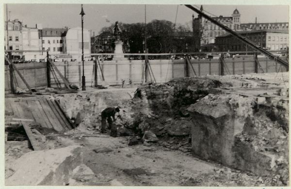 Grävningarna på Kommendantshusets tomt sedan detta rivits 1935. Rådhusgrävningarna 1935.