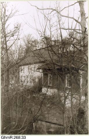 Kärralunds herrgård: större huset är herrgårdens huvudbyggnad; det mindre i förgrunden boställe för tjänstepersonal. Vy från söder.