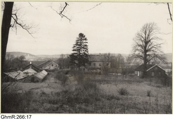 Vidkärrs gård/herrgård. Huvudbyggnad samt ekonomianläggningar sedda söderifrån.