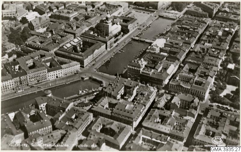 Flygfoto över Stora Hamnkanalen och bebyggelse söder och norr om densamma.