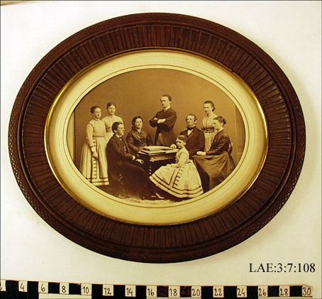 sittande från vänster: Viktor Hasselblad, Susen Hasselblad f. Kjellberg, F W Hasselblad, Hulda Hasselblad gift Elliot, främst Gerda Hasselblad gift Bildt.