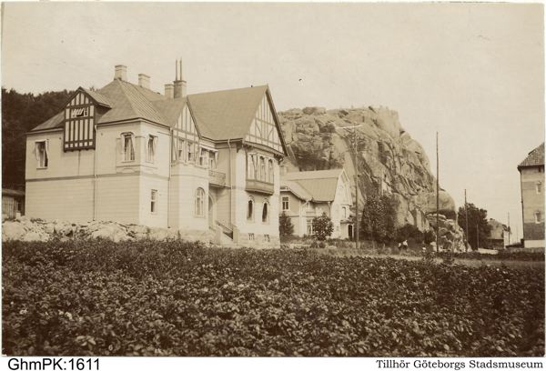 I förgrunden apoteket "Nordstjärnan", bortom detta doktorsbostaden Villa Alpklyftan, 1915.