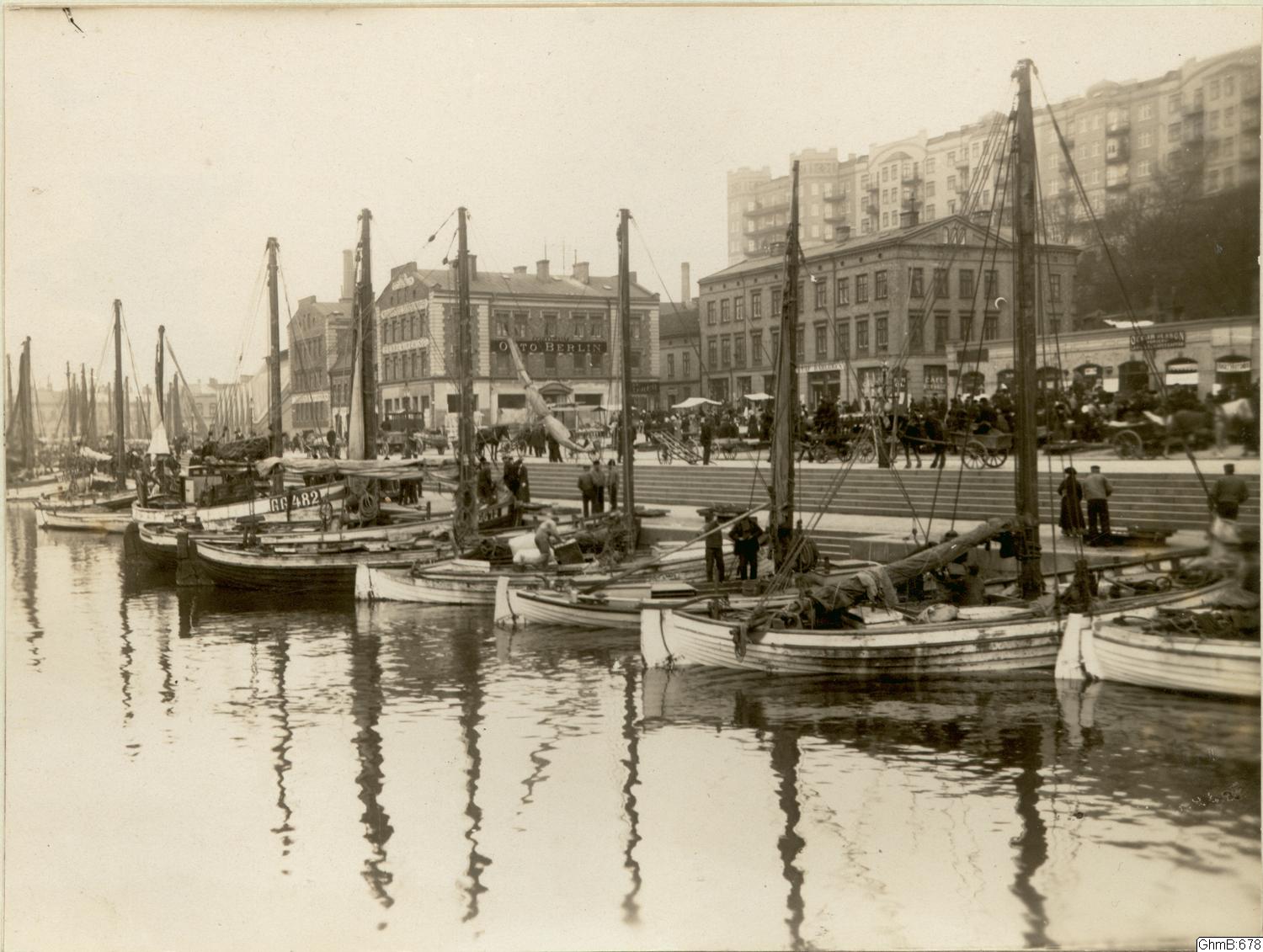 Sträckningsbild utmed Rosenlundskanalen och Fisktorget. I fonden Rosenlundsgatan och Kungshöjd.