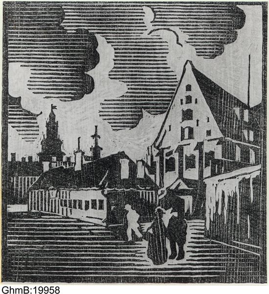 Träsnitt med måtten 37 X 34 cm