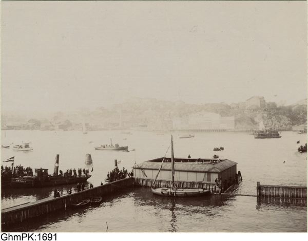 Pansarbåten Niords sjösättning. Badhuset vid Bläsan i förgrunden.