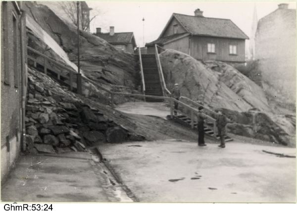 Kyrkoliden från Klamparegatan. Fasad mot öster, gavel mot söder.